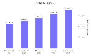 “As we move through the 4th quarter of 2025 and into 2026, we expect to see additional new partner engagements, thanks to the continued strength and quality of our CCBX pipeline. To facilitate our growth in the BaaS space, we remain committed to investing in our technology and risk management infrastructure. These strategic investments are projected to drive future operational efficiencies, boost automation, and lower costs, even as we focus on managing current noninterest expenditures effectively. Credit quality remains central to our strategy, and with a slightly liability sensitive balance sheet we feel well-positioned for future interest rate changes.” said CEO Eric Sprink.